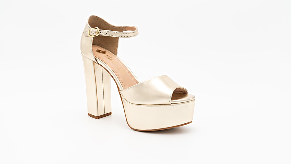 كعب ذهبي بفتحة أمامية و جلد أملس